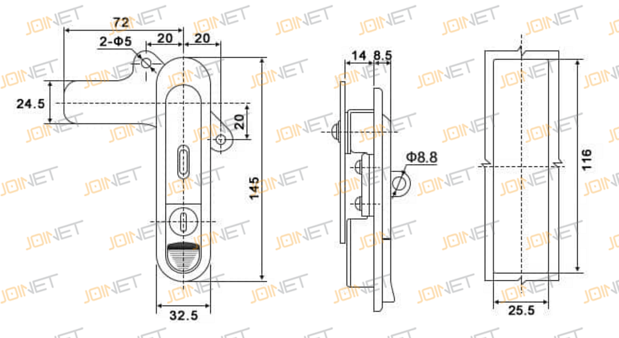 3. قفل سوئیچ دار عمودی و ریتال تابلو برق و رک JN300-P